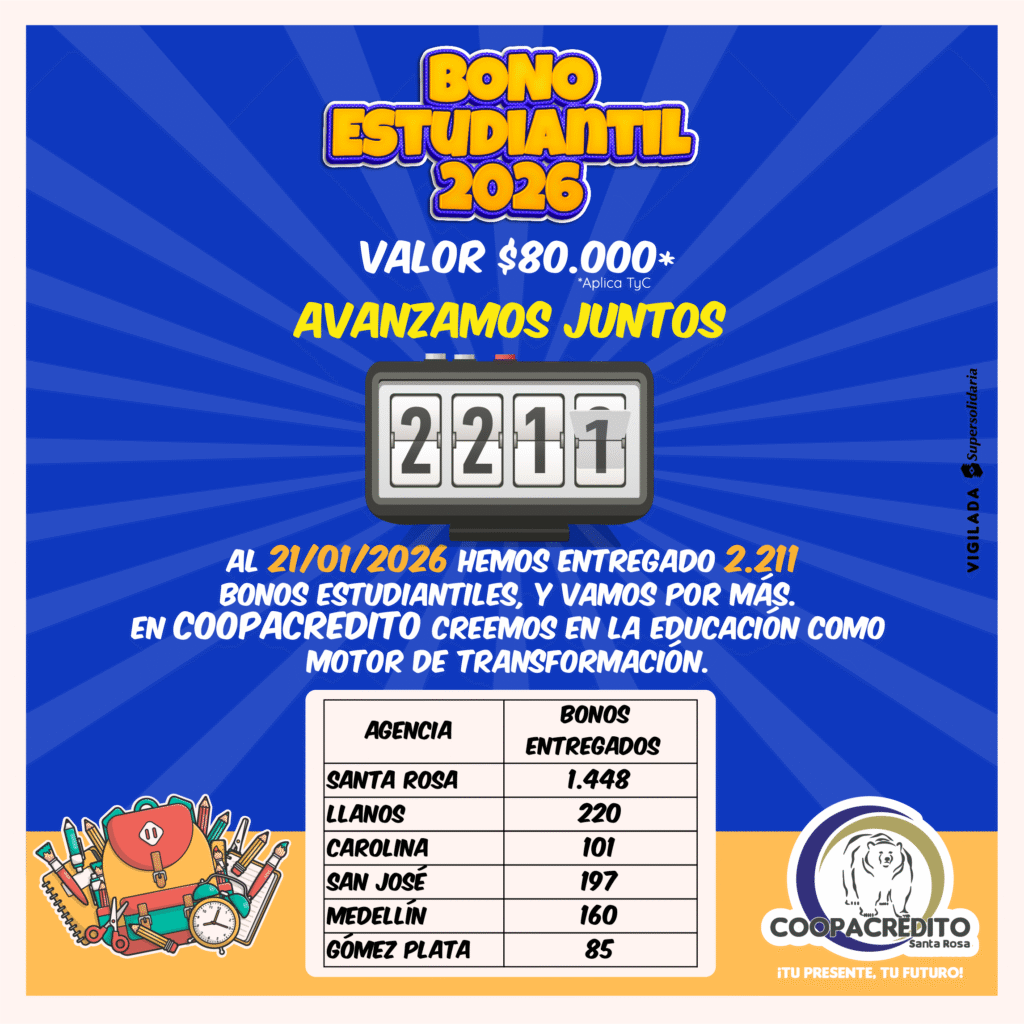 Con corte al 21/01/2026 2.211 Bonos Estudiantiles entregados a nuestros Asociados, reafirmando nuestro compromiso con el apoyo a la Educación.