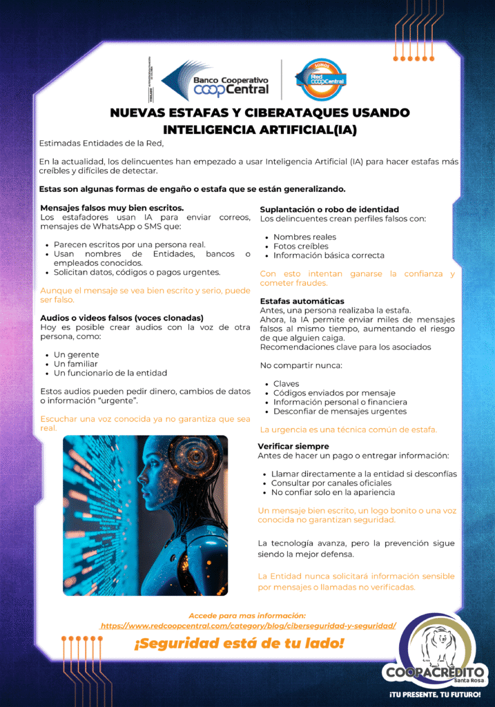 Recuerda: la Entidad nunca solicitará información sensible por mensajes o llamadas no verificadas.